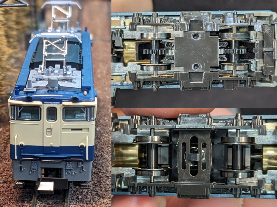 車輪はKATO社純正の黒染車輪を使用して改軌しており、ゴムタイヤありです。
