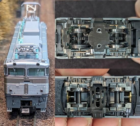 車輪はKATO社純正の黒染車輪を使用して改軌しており、ゴムタイヤありです。